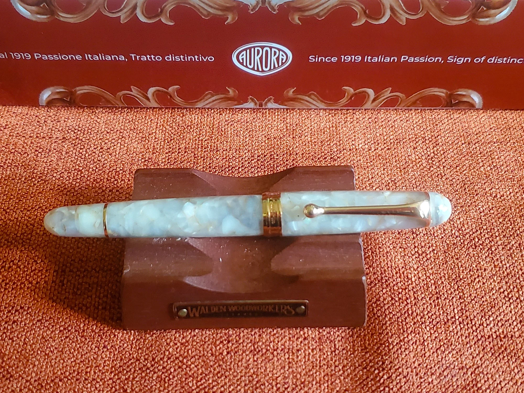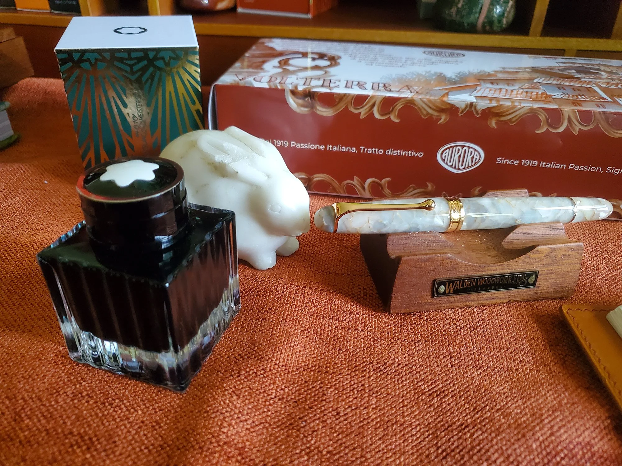 The life of emotions is strange sometimes. The twists and turns of the pen hobby for me are tightly linked to my trauma healing journey, which involves a lot of private journaling with my favorite fountain pens. I did not want to like the new Aurora - even though I bought it for all the right reasons and after a long wait, the timing was off - I was still not over the whole tiger situation. Life rarely follows predictable scripts. I thought I made a mistake, but I love the Volterra. It’s beautiful, perfectly proportioned; the semitransparent pale material is supposed to evoke alabaster, and it absolutely does. The resin also has these subtle flashes of iridescent green. The F nib, which is made by Aurora in-house, writes perfectly. I took the Volterra with me on a recent trip to Boston, and it was a delight to use. I appreciated having my emotional support stationery on a trip that turned out to be difficult and anxiety-inducing, and felt grateful to have the Aurora and the spirit of the Gathering with me.
