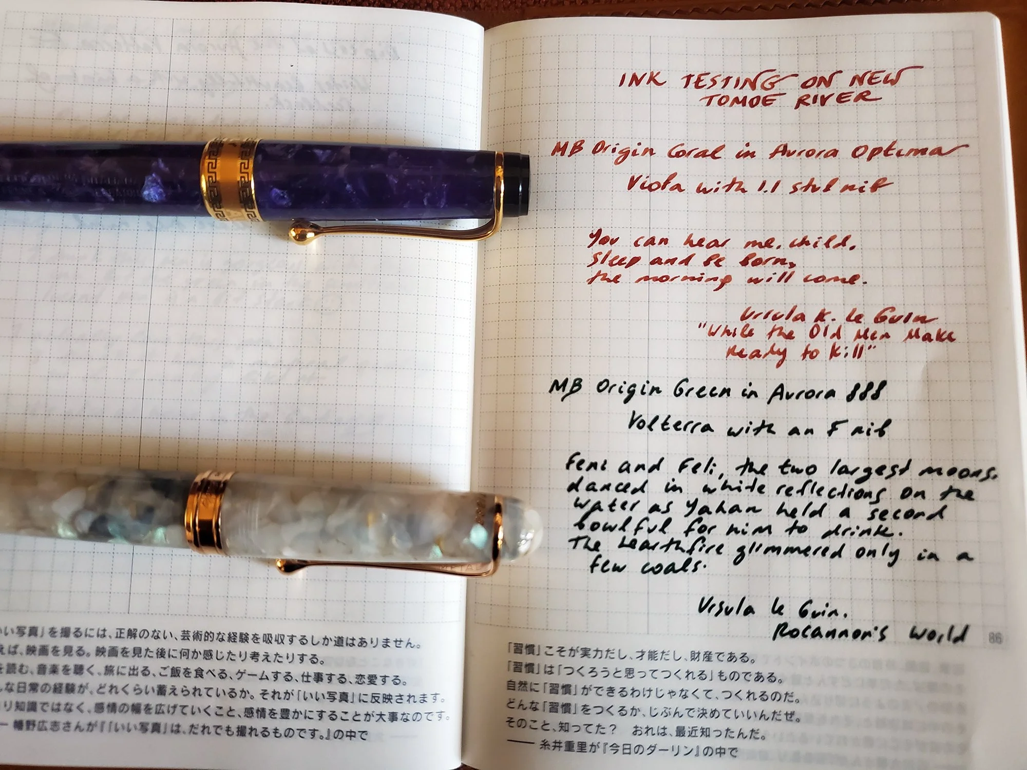 Testing both inks on new Tomoe River in my Hobonichi A6